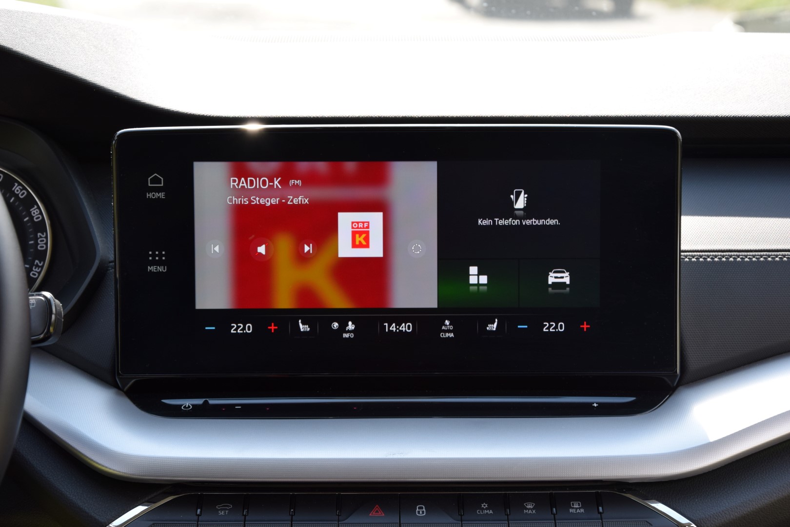 Premiere in einem ŠKODA hat auch dsas optionale Headup-Display. Es projiziert die wichtigsten Informationen wie Geschwindigkeit, Navigationshinweise, erkannte Verkehrszeichen oder die aktivierten Fahrerassistenzsystemedirekt auf die – auf Wunsch beheizbare – Windschutzscheibe.