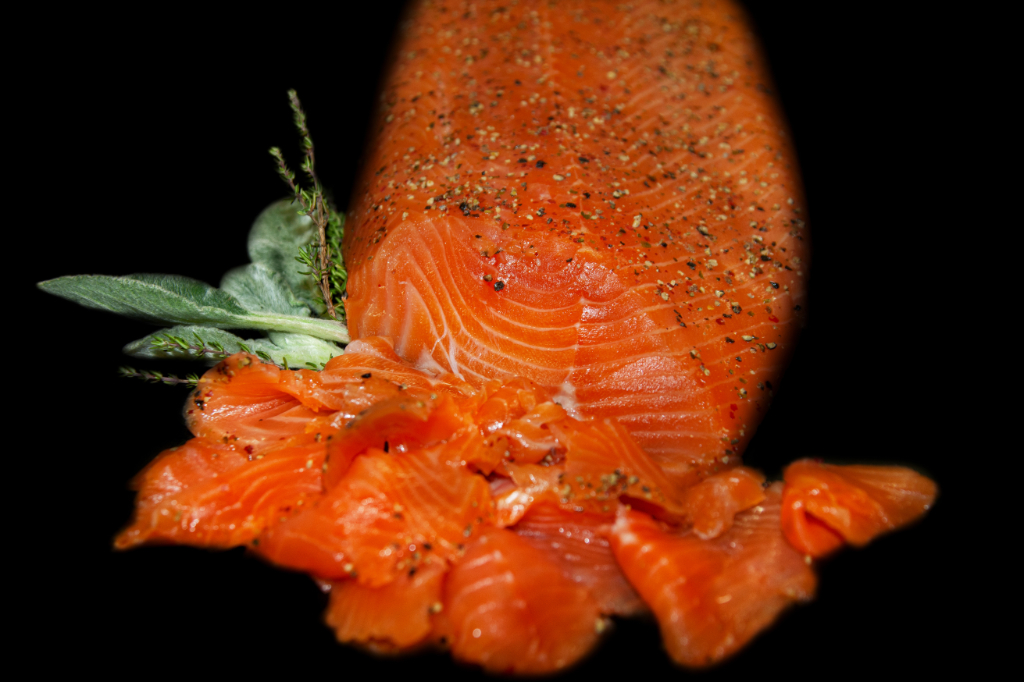 Von Hand veredelt mit Gewürzen wie Dill, Pfeffer, Urmeersalz & hochwertigen Spirituosen wie Whiskey oder Wacholderbrand wird der frische Färöer Island Lachs zur wohlschmeckenden Delikatesse.